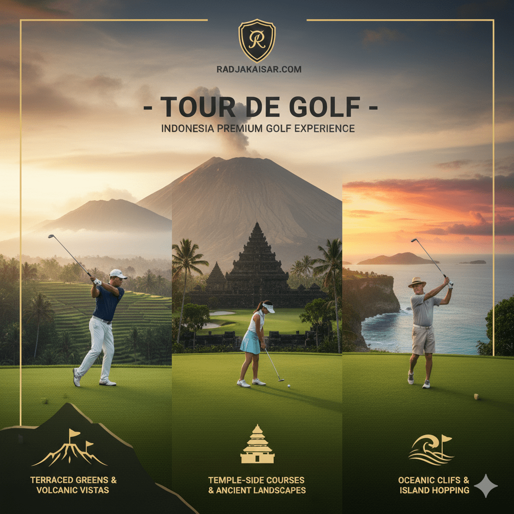 The RadjaKaitsar Tour De Golf Package is a premium golf travel program that combines luxury accommodation, access to top golf courses, and complete travel management for an exclusive golf experience in Indonesia.