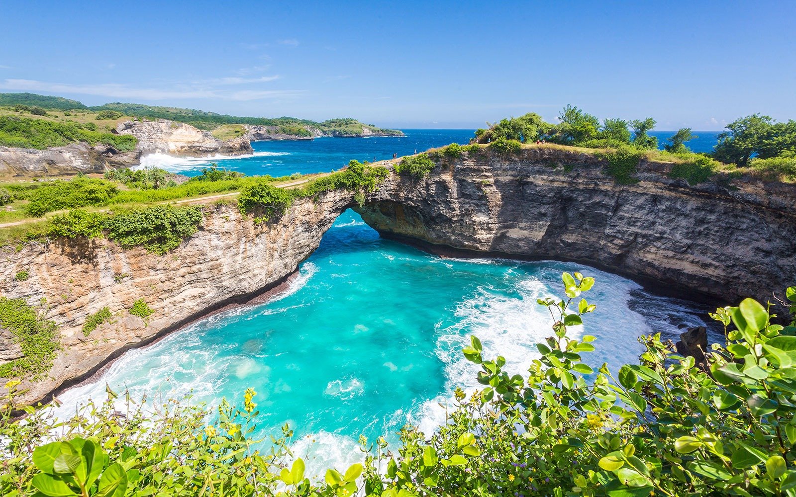 Next, discover the world-famous Kelingking Beach, known for its dramatic T-Rex-shaped cliff. With its jaw-dropping views and turquoise waters, it is one of the most photographed locations in Bali.